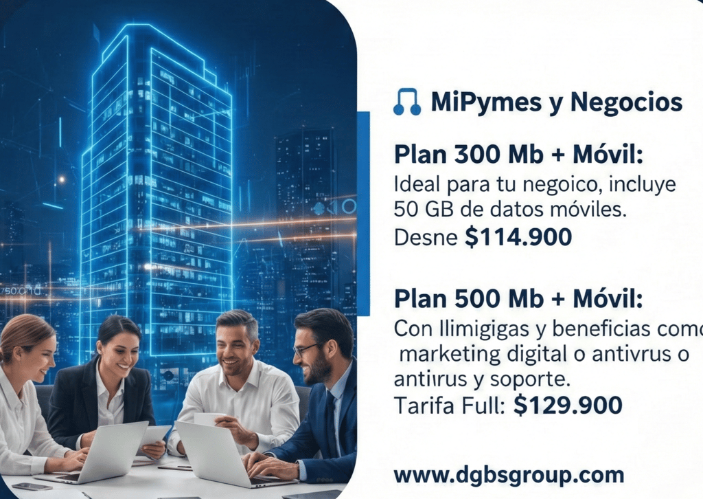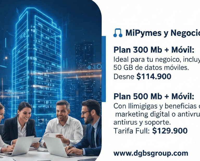 Plan 300 Mb + Móvil: Ideal para tu negocio, incluye 50 GB de datos móviles. Desde $114.900.
